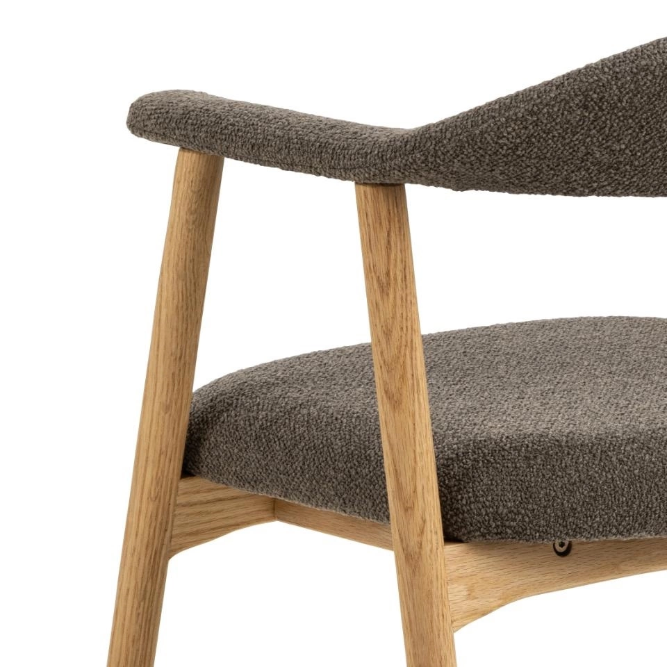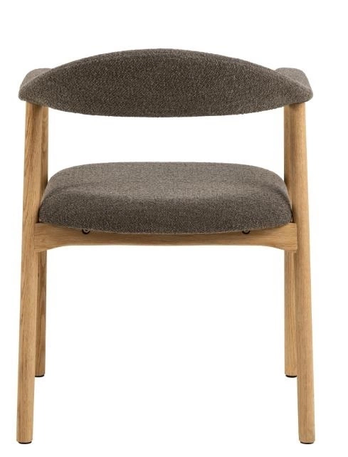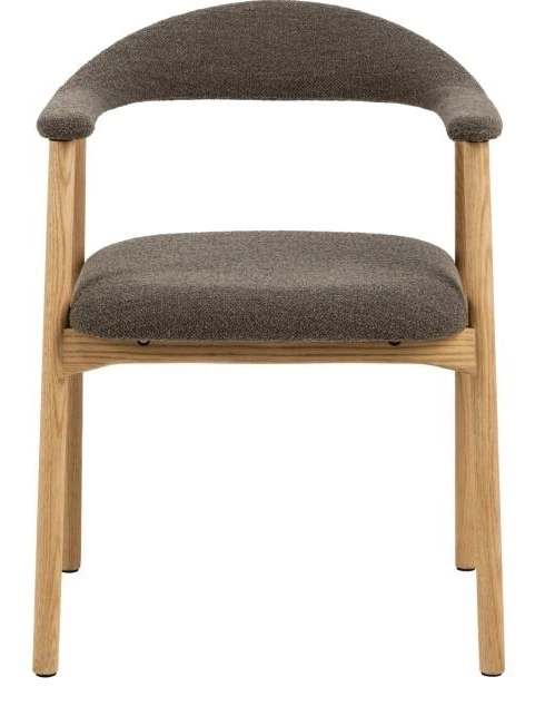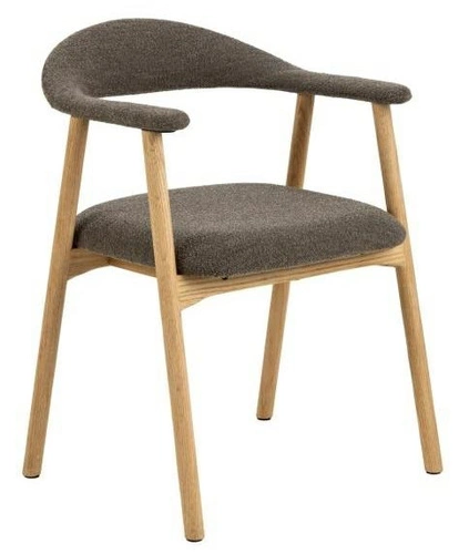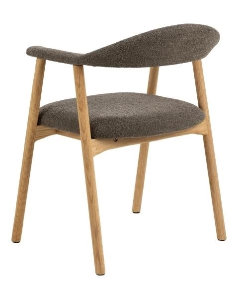 Krzesło Addi z podłokietnikami to krzesło w stylu boho z tapicerowanym siedziskiem i oparciem. Wykonane ono zostało z olejowanego, litego drewna dębu. Stabilna podstawa oraz idealnie wyprofilowane oparcie gwarantuje komfort siedzenia. Tkanina jaką użyto to siedziska i oparcie to grubopleciony materiał o kolorze brązowym Monza 40. Ciekawa tekstura i bardzo gruby splot materiału tworzą idealne połączenie z naturalnymi słojami drewna nóg. Max. obciążenie 110kg. Wysokośc oparcia: 32cm Głębokośc siedziska: 45cm Szerokość siedziska: 47cm Wysokość podłokietników od podłogi: 66,5cm Szerokość podłokietników: 7cm Głębokość podłokietników: 9cm Waga krzesła 4kg. Wymiary kartonu: 28x58x75cm