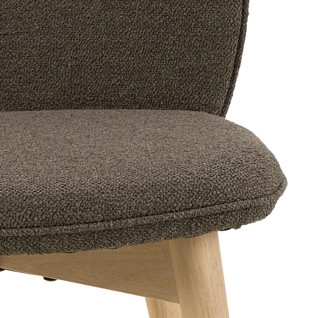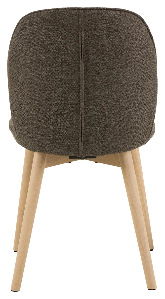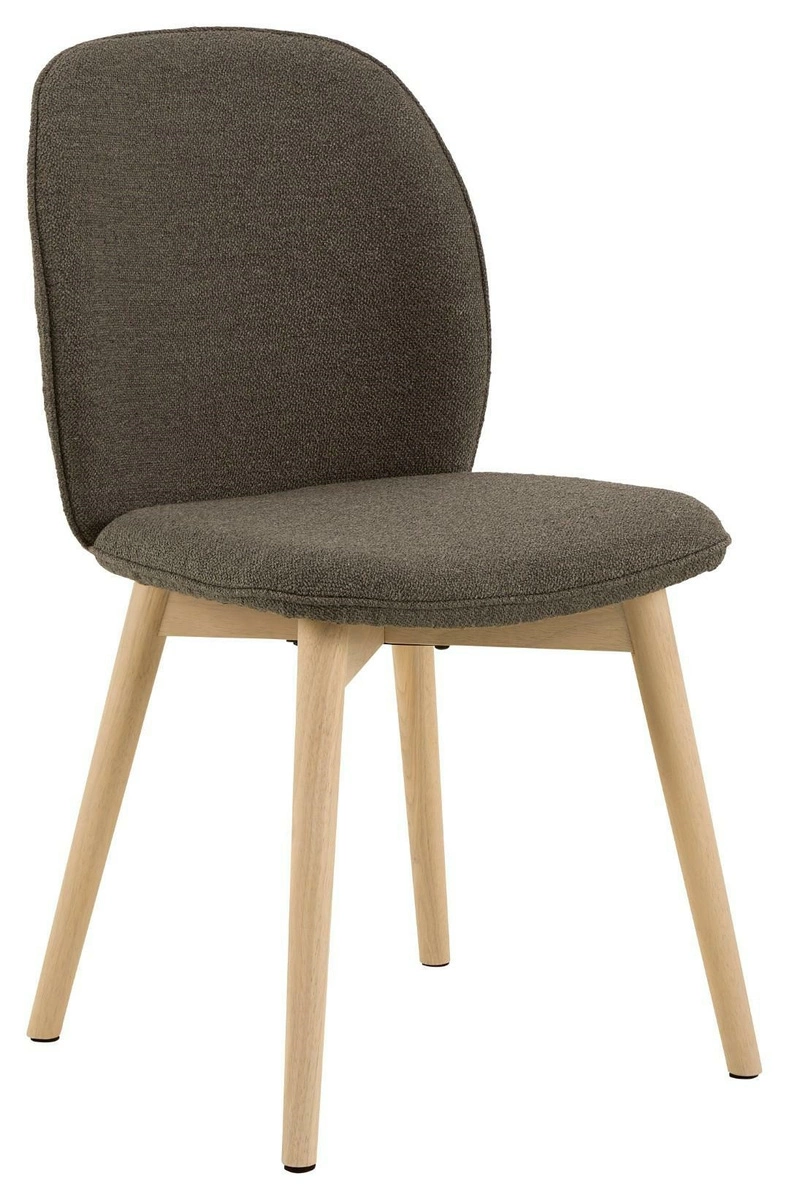 Krzesło Cindy to krzesło do jadalni lub salonu. Zaokrąglone oparcie zapewni wsparcie podczas siedzenia. Krzesło tapicerowane jest miękką tkaniną typu bouclé o kręconej strukturze, która nadaje mu nowoczesnego charakteru. Aby nadać mu lekki, skandynawski wygląd, wsparto go na drewnianych nogach olejowanych oraz bielonych. Krzesło do jadalni Cindy, tkanina Monza w kolorze taupe 40, podstawa z drewna kauczukowego olejowanego. Wygodne krzesło do jadalni w nowoczesnym, skandynawskim stylu. Tapicerowane brązowo beżową tkaniną przypominającą bouclé. Ozdobione lamówką . Certyfikat FSC. Zaprojektowany przez Christinę Aagaard i chroniony wyłącznie dla Actona. Wysokość oparcia 43 cm Szerokość siedziska 49 cm Głębokość siedziska 44,5 cm Max. obciążenie 110kg