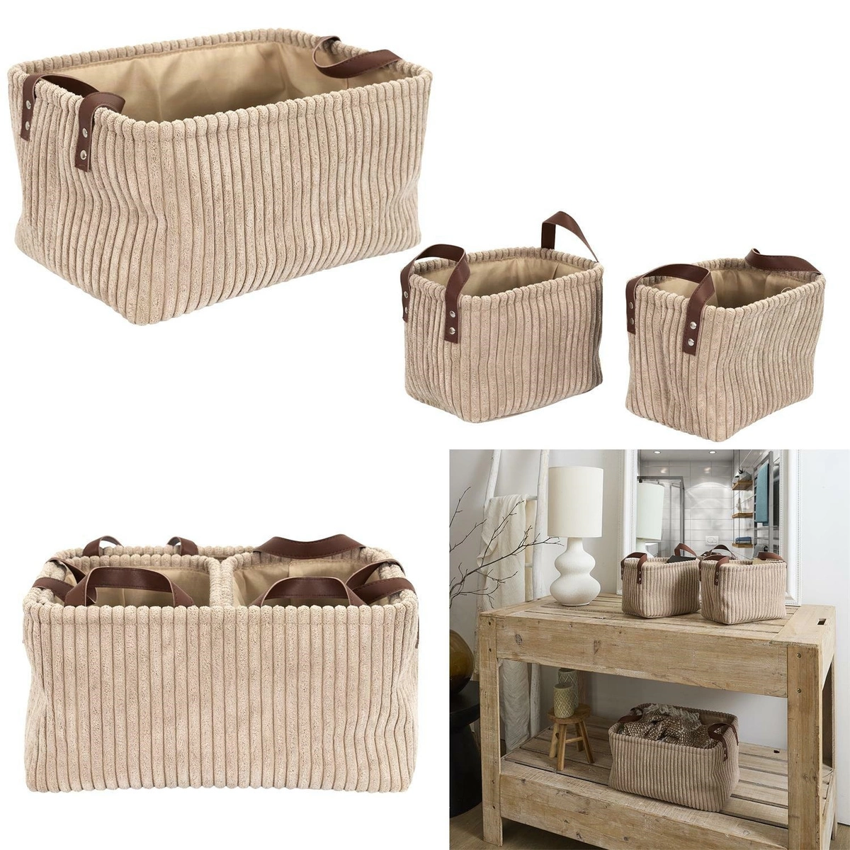 Zestaw 3 koszy Sztruks taupe