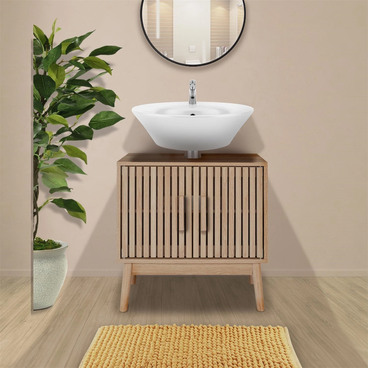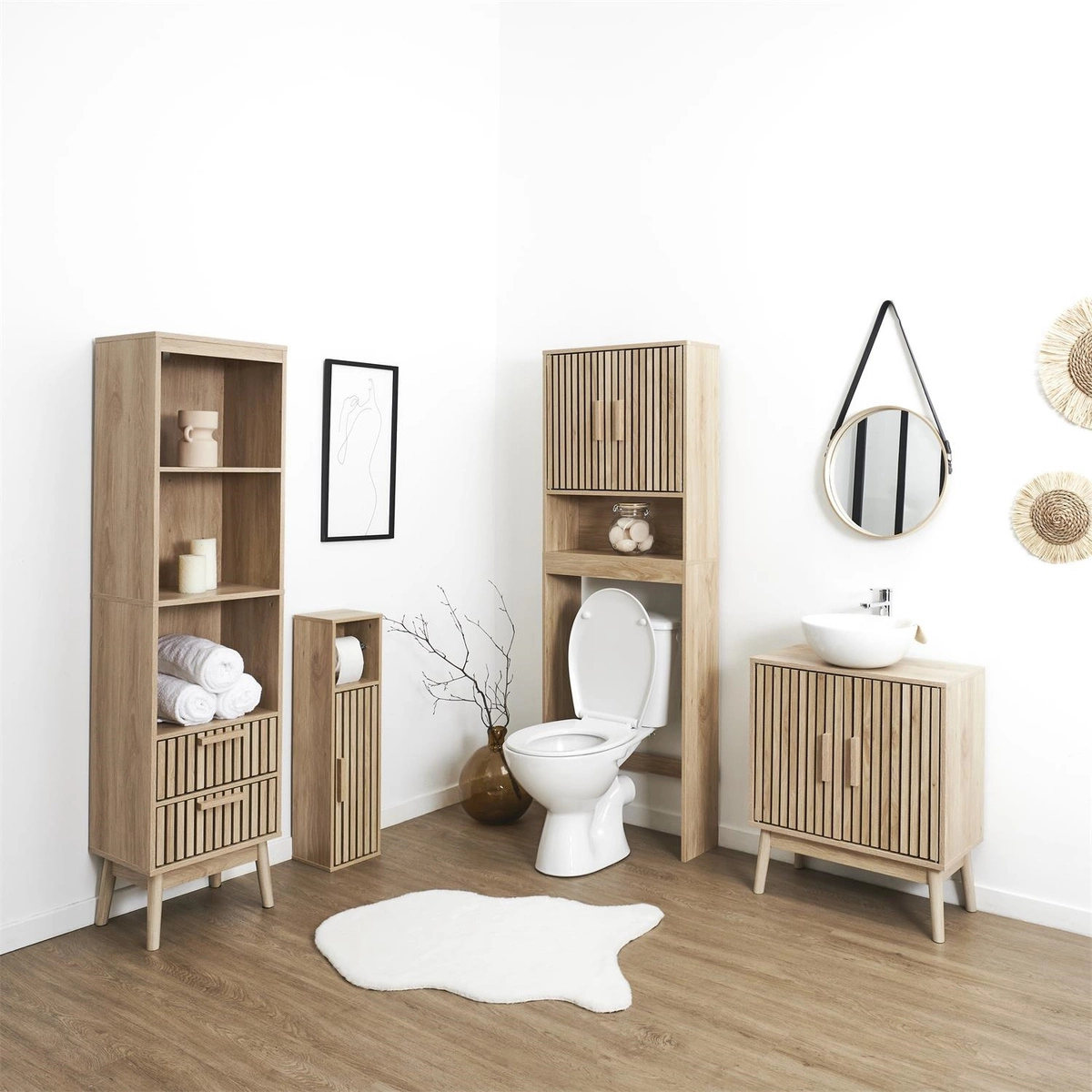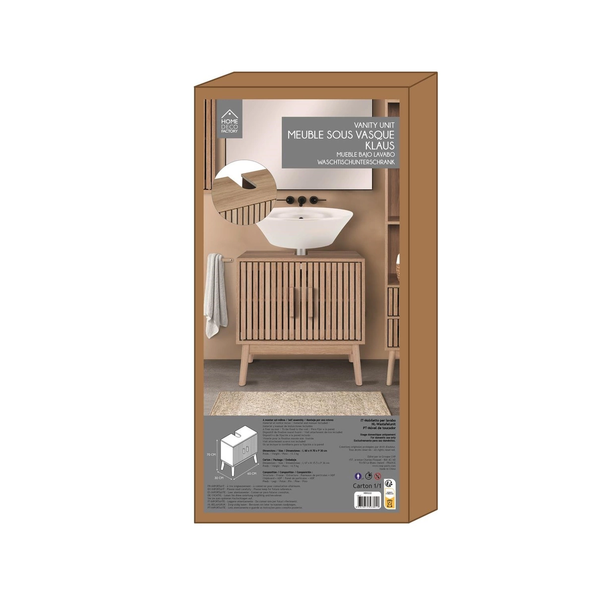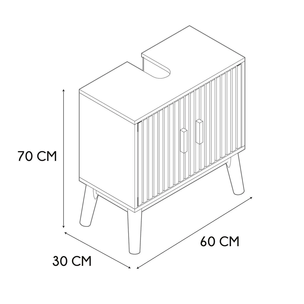 Szafka pod umywalkę Klaus to nowoczesny mebel łazienkowy o eleganckim i minimalistycznym designie. Fronty szafki są zdobione pionowymi, wąskimi listwami, które tworzą ciekawy efekt wizualny i dodają tekstury. Uchwyty są zintegrowane z frontami, co podkreśla nowoczesny charakter mebla. Szafka stoi na czterech krótkich nogach, które są lekko rozstawione na zewnątrz, co zapewnia jej stabilność. Długość produktu (CM): 60 Wysokość produktu (CM): 70 Głębokość produktu (CM): 30 Waga produktu (GR): 13300 Materiał: drewno sosna, MDF, papierPotrzebujesz pomocy? Masz pytania?Zadaj pytanie a my odpowiemy niezwłocznie, najciekawsze pytania i odpowiedzi publikując dla innych.
