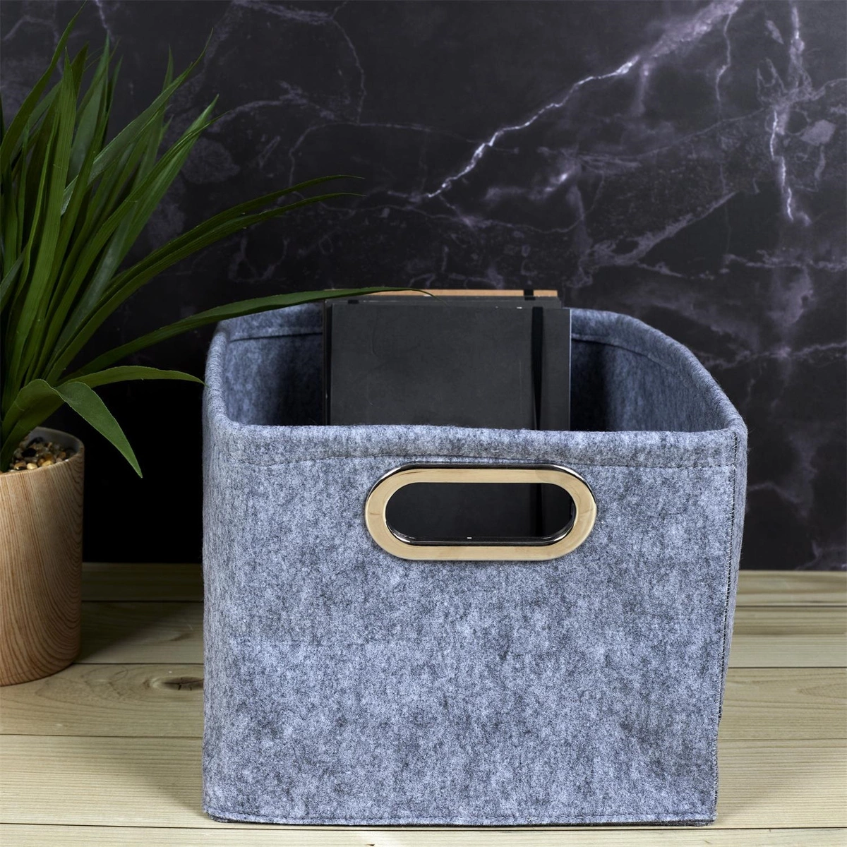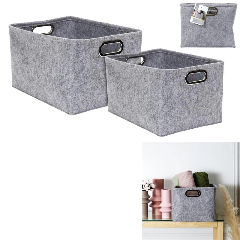 Zestaw 2 pudełek z filcu sprawdzi się do przechowywania nie tylko drobnych przedmiotów, ale również kocy, pledów lub pluszaków. Wymiary pudełek: większe: 40x30x24,8 cm, mniejsze: 35x25x20 cm