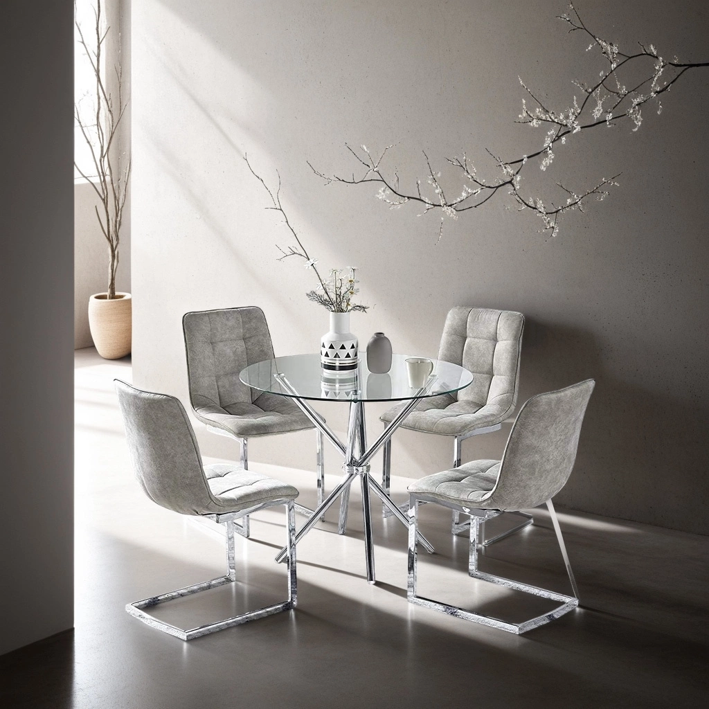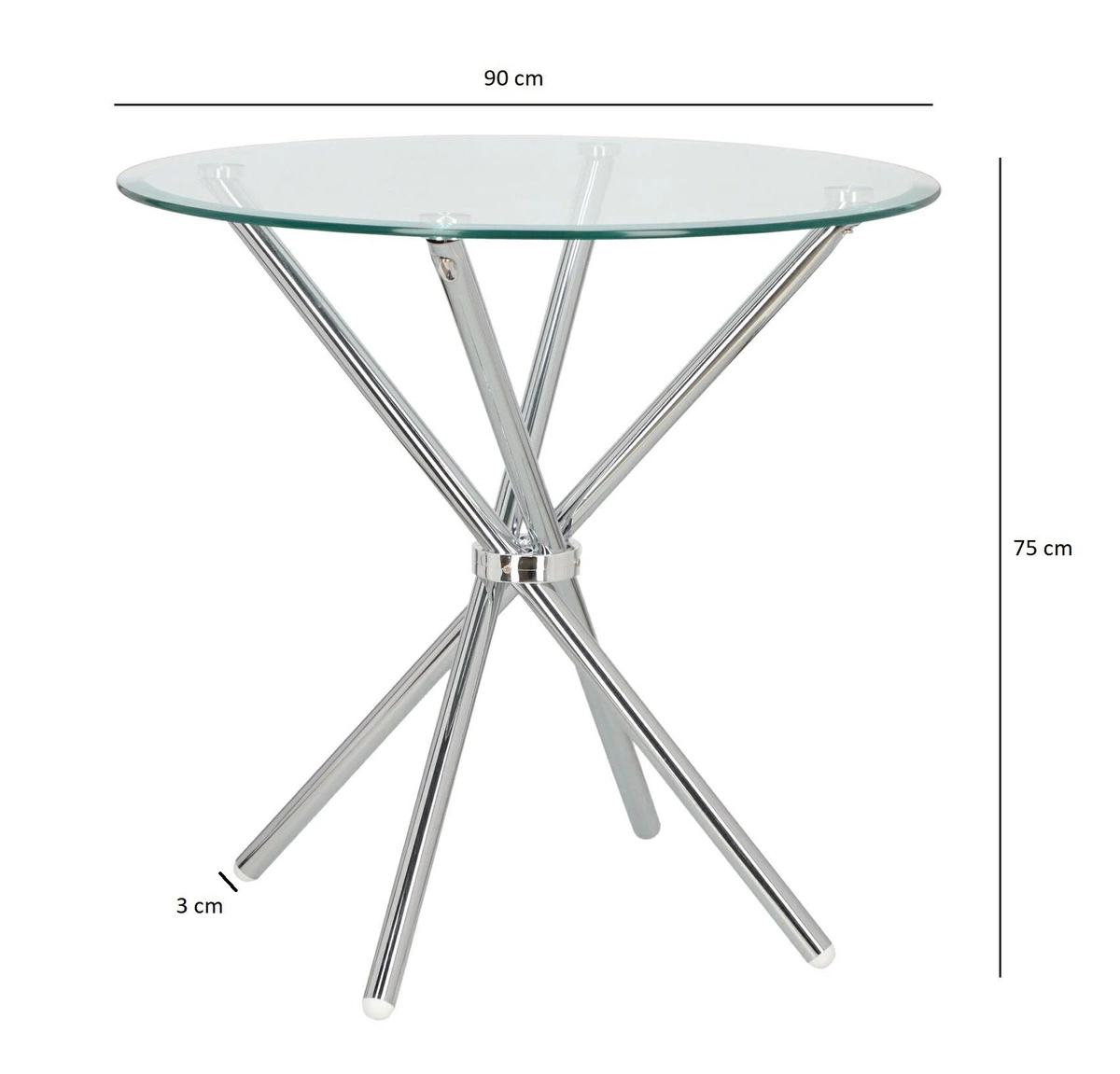 Stół Ufo to połączenie minimalistycznego szklanego, okrągłego blatu oraz chromowanej podstawy o oryginalnej budowie. Szklany blat o średnicy 80 cm wykonany został z hartowanego szkła. Grubość blatu 1 cm. Nogi stołu wykonane z metalu chromowanego. Nowoczesny i elegancki design stołu uzupełni jadalnie lub kuchnię w nowoczesnym stylu. Kompaktowy rozmiar 80 centymetrów zapewnia wszechstronne możliwości spożywania posiłków. Łatwy w czyszczeniu stół sprawdzi się podczas rodzinnego biesiadowania jak i podczas śniadania z małymi dziećmi. Stół wystarczy przetrzeć ściereczką z detergentem, aby uzyskać od nowa nieskazitelną czystość i blask. Średnica nogi stołu 3 cm Stół wymaga montażu. Maksymalne obciążenie stołu to 50 kg. Waga stołu: 13 kgPotrzebujesz pomocy? Masz pytania?Zadaj pytanie a my odpowiemy niezwłocznie, najciekawsze pytania i odpowiedzi publikując dla innych.