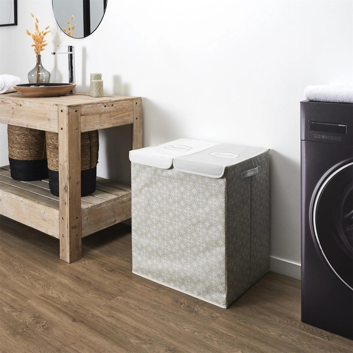 Kosz na pranie podwójny 50x41x57 szary tkanina