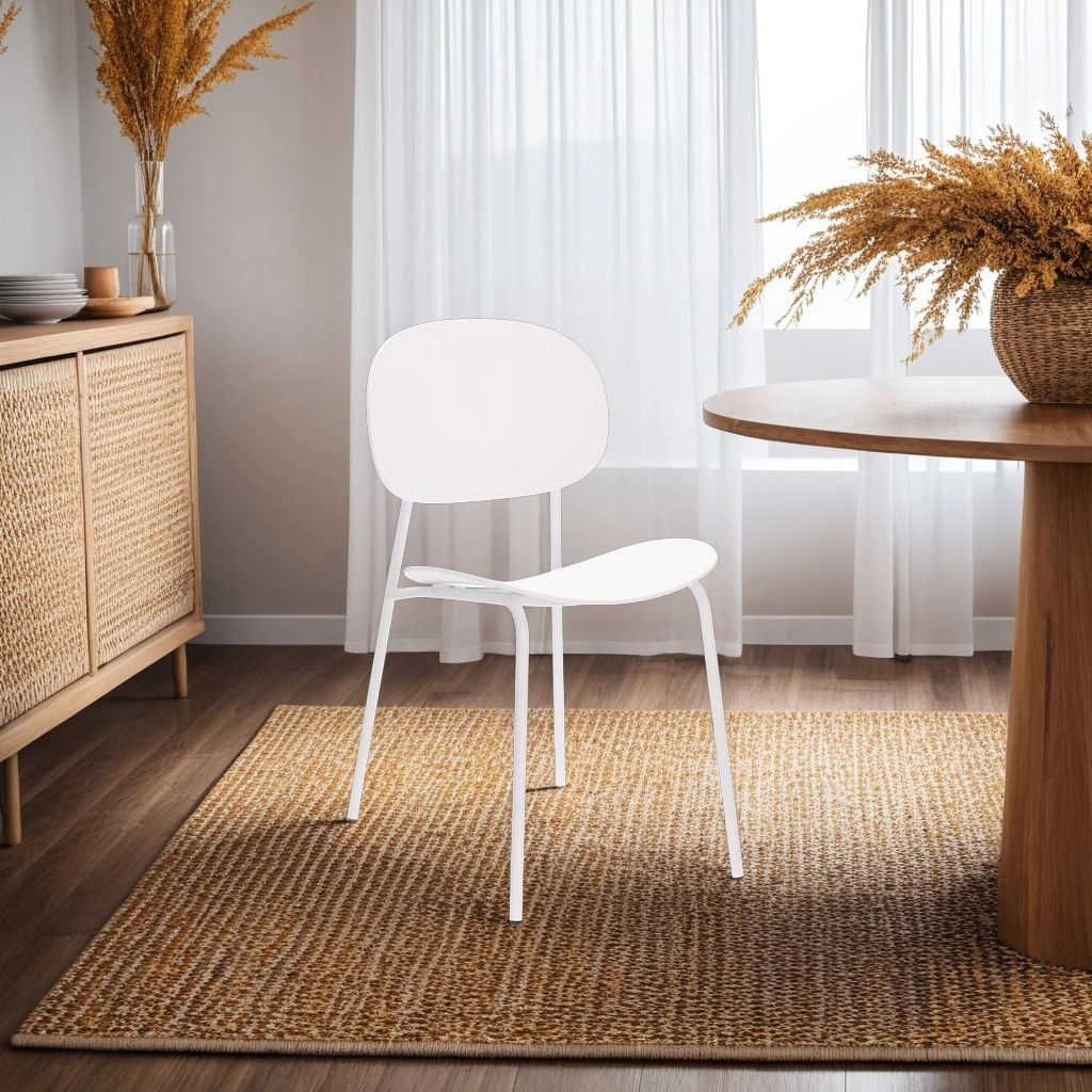 Krzesło Nube to niezwykłe połączenie obłych kształtów i wytrzymałych materiałów. Jednokolorowe krzesło to połączenie oparcia i siedziska z polipropylenu oraz nóg krzesła wykonany z metalu malowanego proszkowo. Matowe wykończenie mebla dodaje mu klasycznego i minimalistycznego wyglądu. Nowoczesne krzesło Nube sprawdzi się w kuchni lub kawiarni, gdyż jest łatwe w czyszczeniu, a plamy z kawy lub sosu wystarczy zetrzeć za pomocą wilgotnej szmatki z odrobiną detergentu. Matowe krzesło sprawdzi się we wnętrzach w stylu boho, japandi lub skandynawskim. Minimalistyczne krzesło Nube to idealny mebel do małej kuchni lub jako krzesło do niewielkiego, okrągłego stołu. Maksymalne obciążenie krzesła to 120 kg.