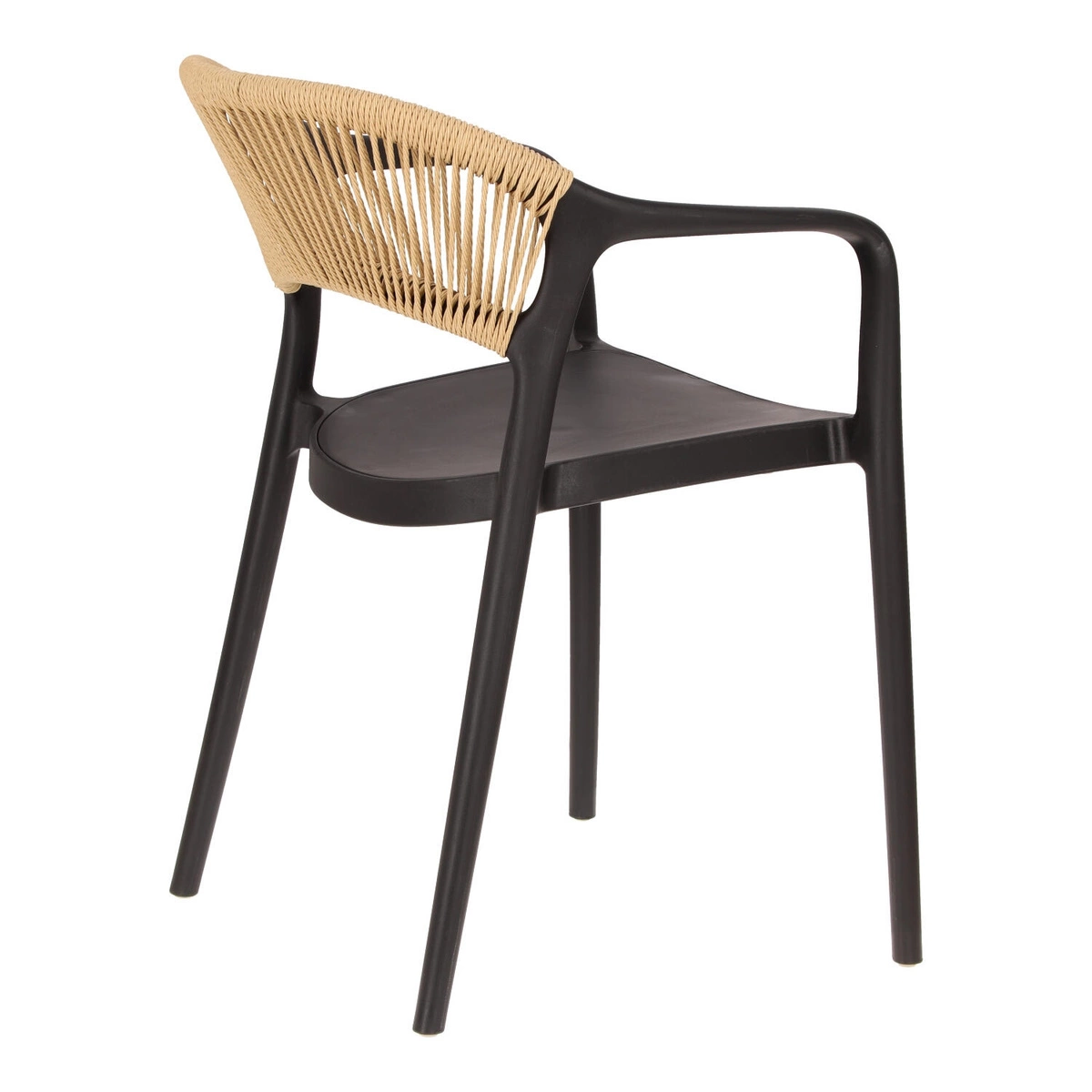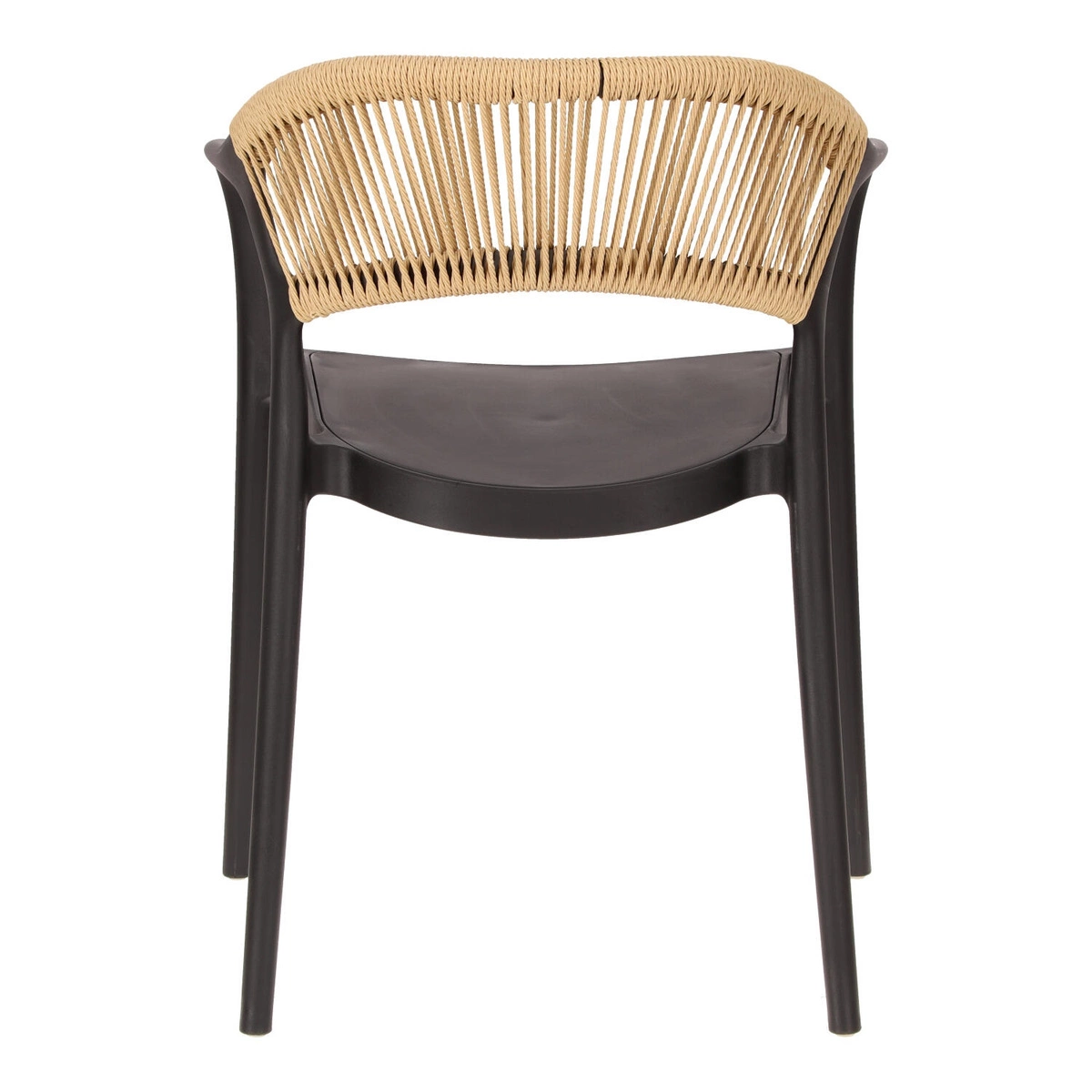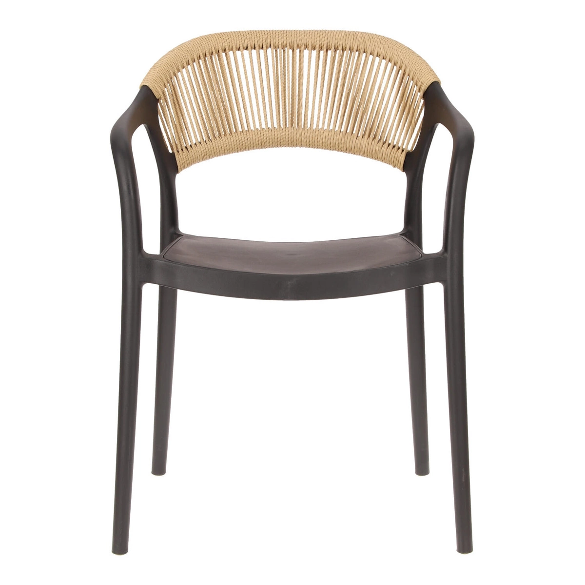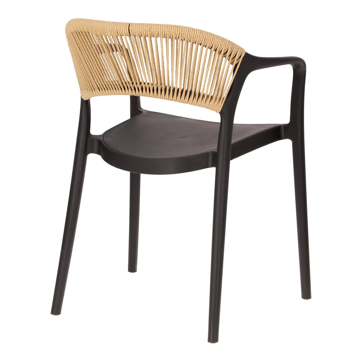 Krzesło Osma to połączenie wytrzymałego na promienie UV polipropylenu z plecionką ze sznura z tworzywa sztucznego (poliestru). Krzesło o wygodnym, lekko zaoblonym oparciu wyposażone zostało również w podłokietniki. Intrygujące oparcie jest nie tylko efektowne, ale również wygodne. Miękkie sznurki układają się pod kształt pleców. Max. obciążenie 120kg. Krzesło nie wymaga montażu. Krzesło sztapluje się. Maksymalne stosy 6szt Krzesło nadaje się do użytku na zewnątrz. Grubość nóg: 2,5cm Wysokosc podłokietnikó 68cm Głębokość siedziska 42,5cm Szerokośc siedziska 42cm Waga krzesła 4,5kg