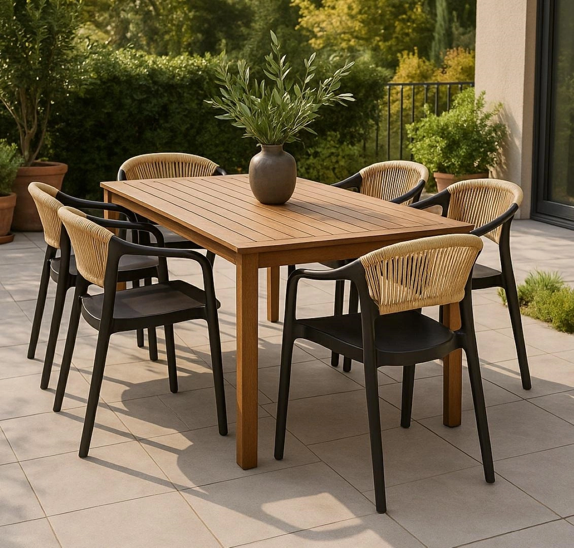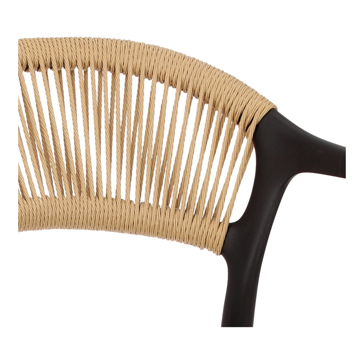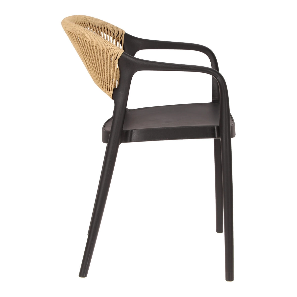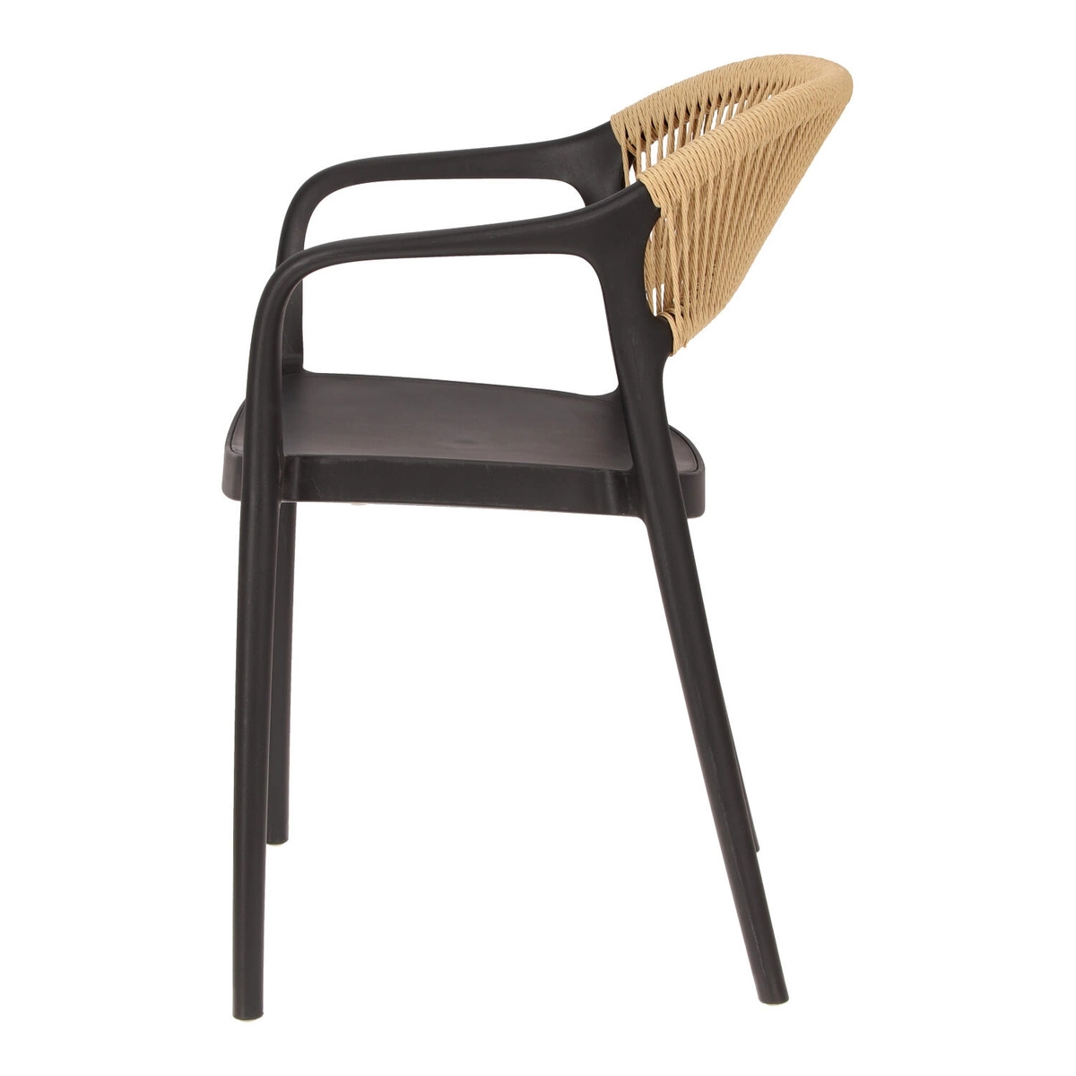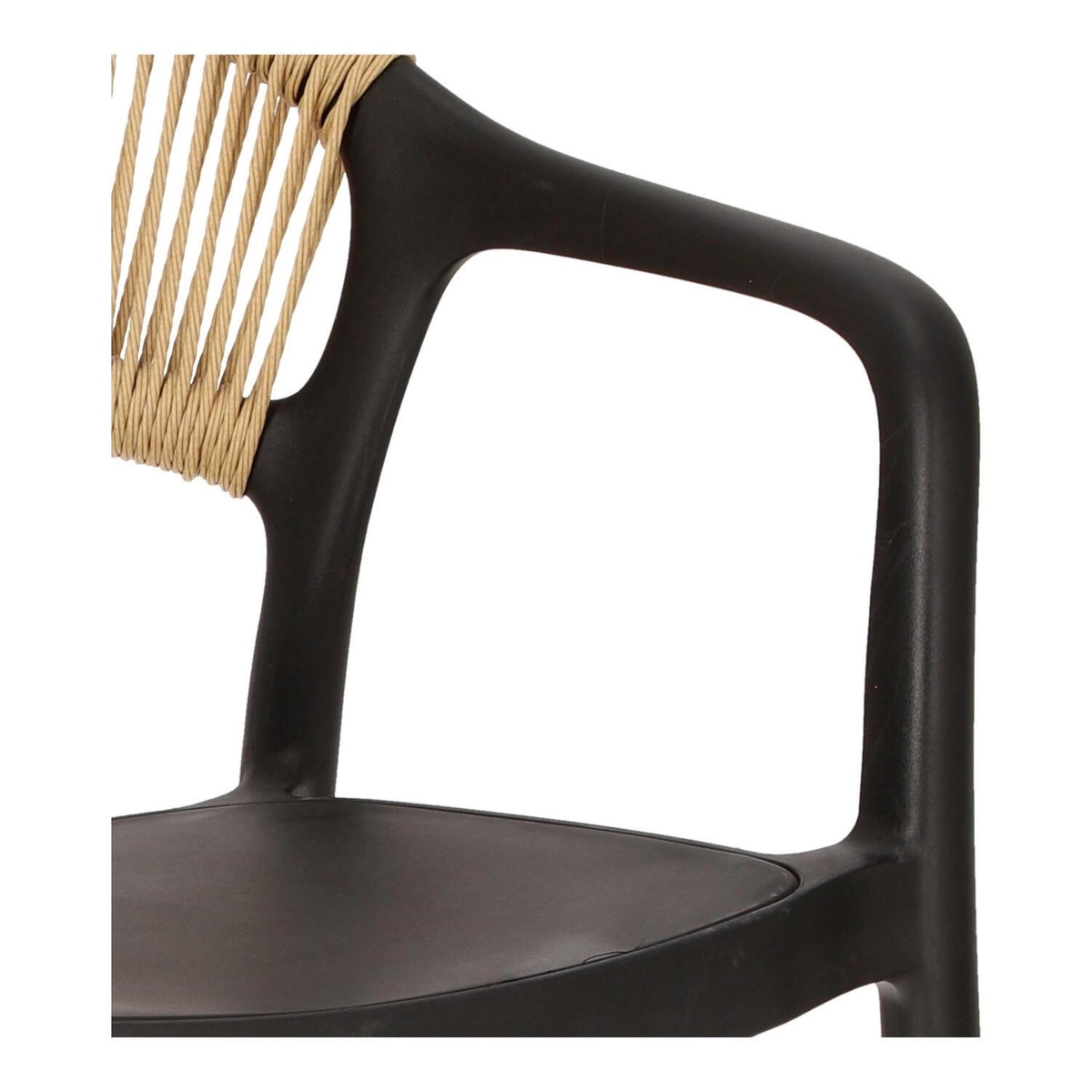 Krzesło Osma to połączenie wytrzymałego na promienie UV polipropylenu z plecionką ze sznura z tworzywa sztucznego (poliestru). Krzesło o wygodnym, lekko zaoblonym oparciu wyposażone zostało również w podłokietniki. Intrygujące oparcie jest nie tylko efektowne, ale również wygodne. Miękkie sznurki układają się pod kształt pleców. Max. obciążenie 120kg. Krzesło nie wymaga montażu. Krzesło sztapluje się. Maksymalne stosy 6szt Krzesło nadaje się do użytku na zewnątrz. Grubość nóg: 2,5cm Wysokosc podłokietnikó 68cm Głębokość siedziska 42,5cm Szerokośc siedziska 42cm Waga krzesła 4,5kg
