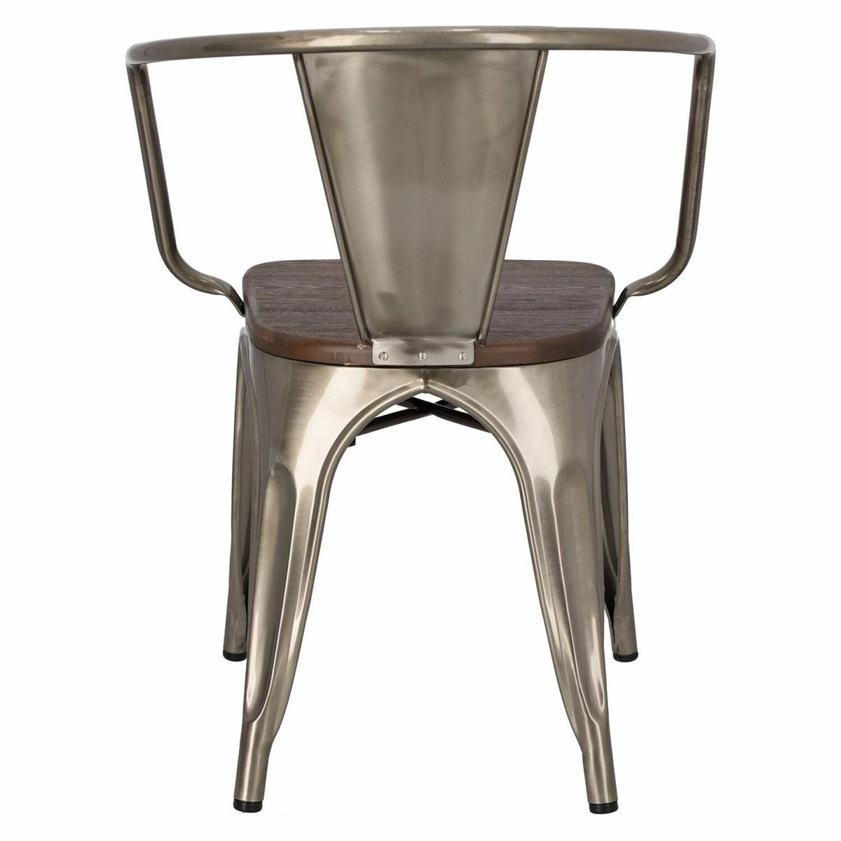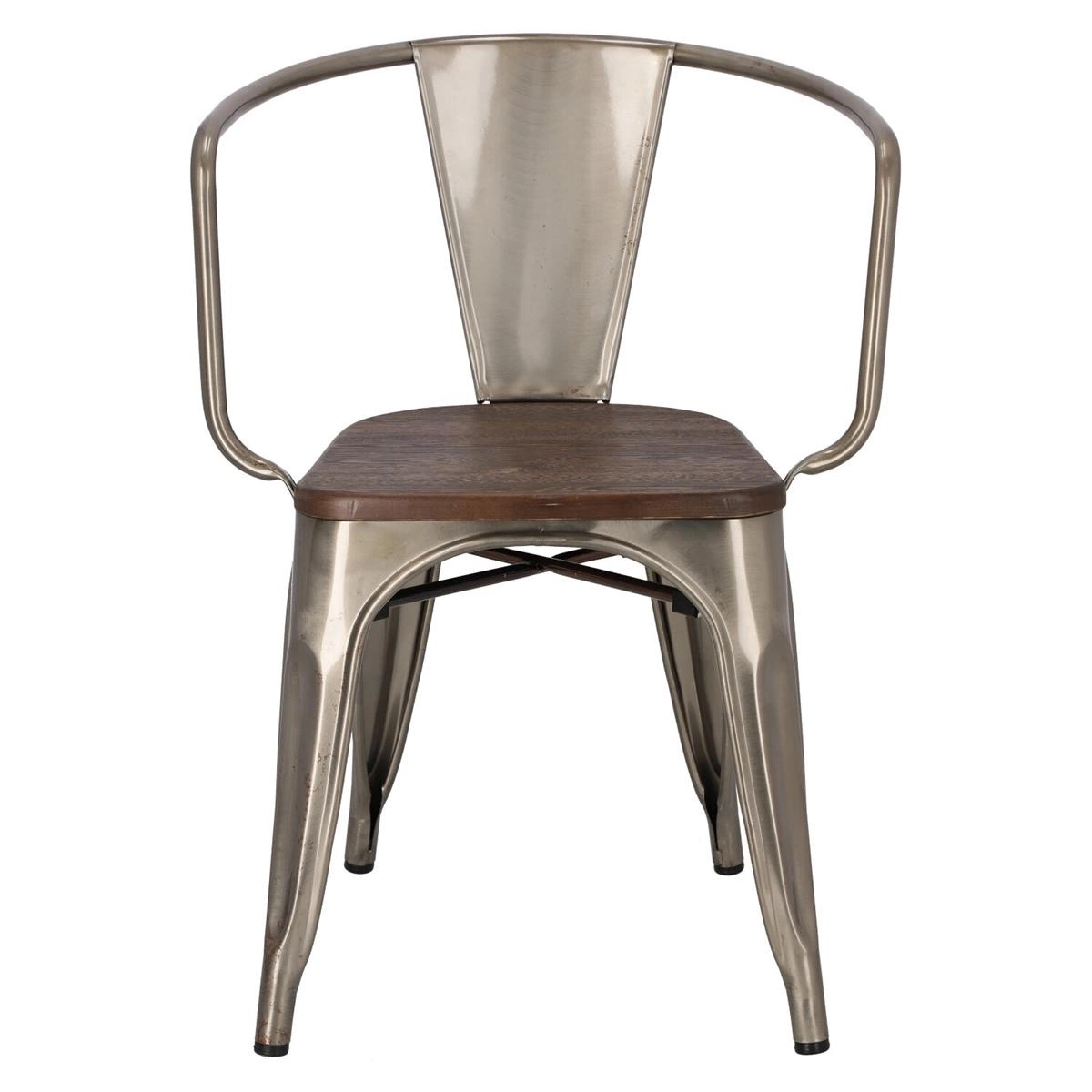 Krzesło Paris Wood Arms to ponadczasowe połączenie drewna i lakierowanego metalu. Dopełnieniem całości będzie siedzisko, wykonane z sosnowego szczotkowanego drewna w wybarwieniu orzechowym. Lakierowana powierzchnia drewnianego siedziska jest gładka i łatwa do utrzymania w czystości. Lakier wnikając w strukturę orzechowego blatu, uwypukla walory drewna. To połączenie dodaje smaku całości kompozycji i sprawia, że mebel zyskuje niepowtarzalny wygląd. Dodatkowym atutem są wygodne i praktyczne podłokietniki a widoczne elementy rdzy dodatkowo dodają uroku całości. Całość utrzymana jest w niezwykle prostym i surowym stylu. Krzesło Paris Wood Arms występuje w wielu wariantach kolorystycznych.Krzesło posiada certyfikaty en 581-1:2017 i en 581-2:2016.