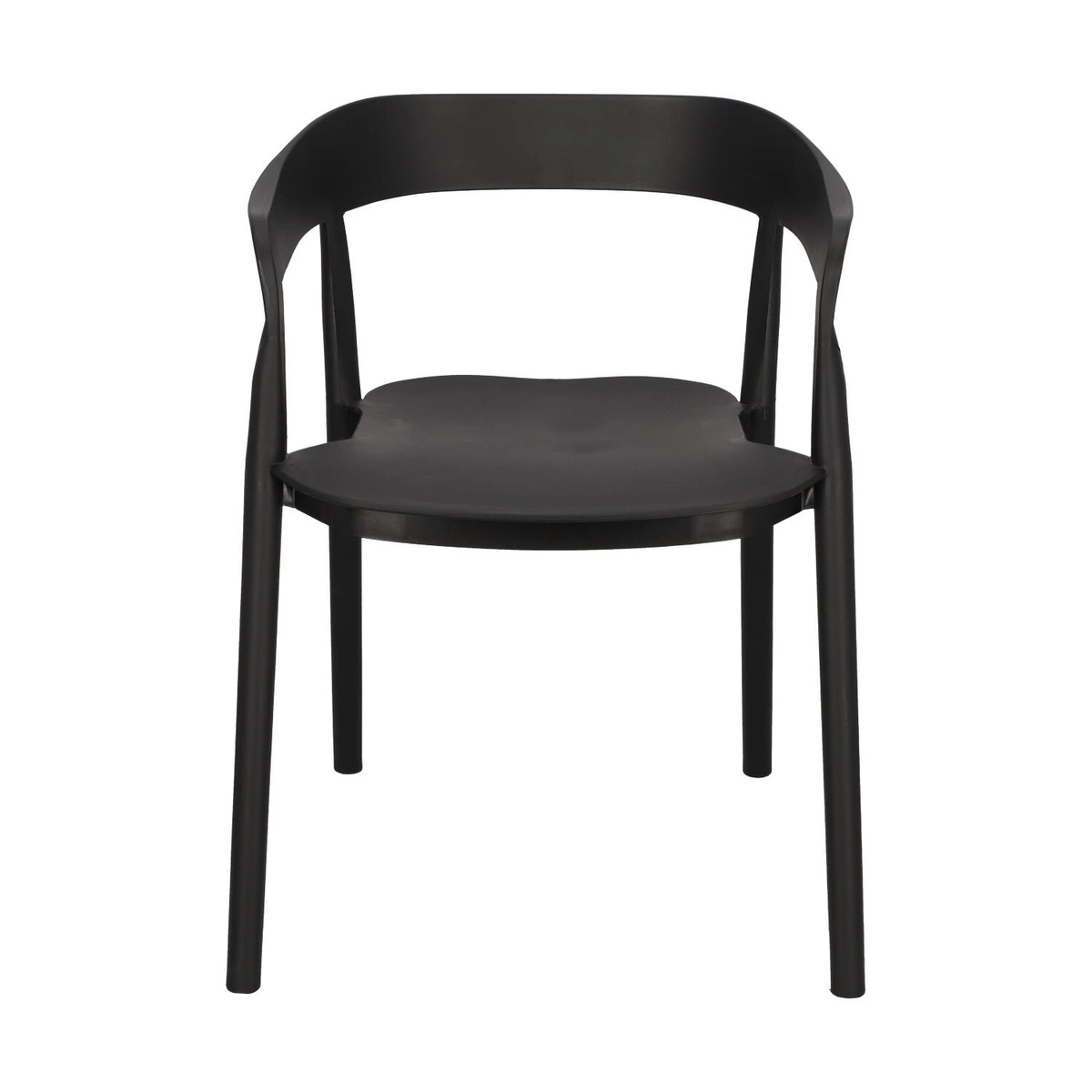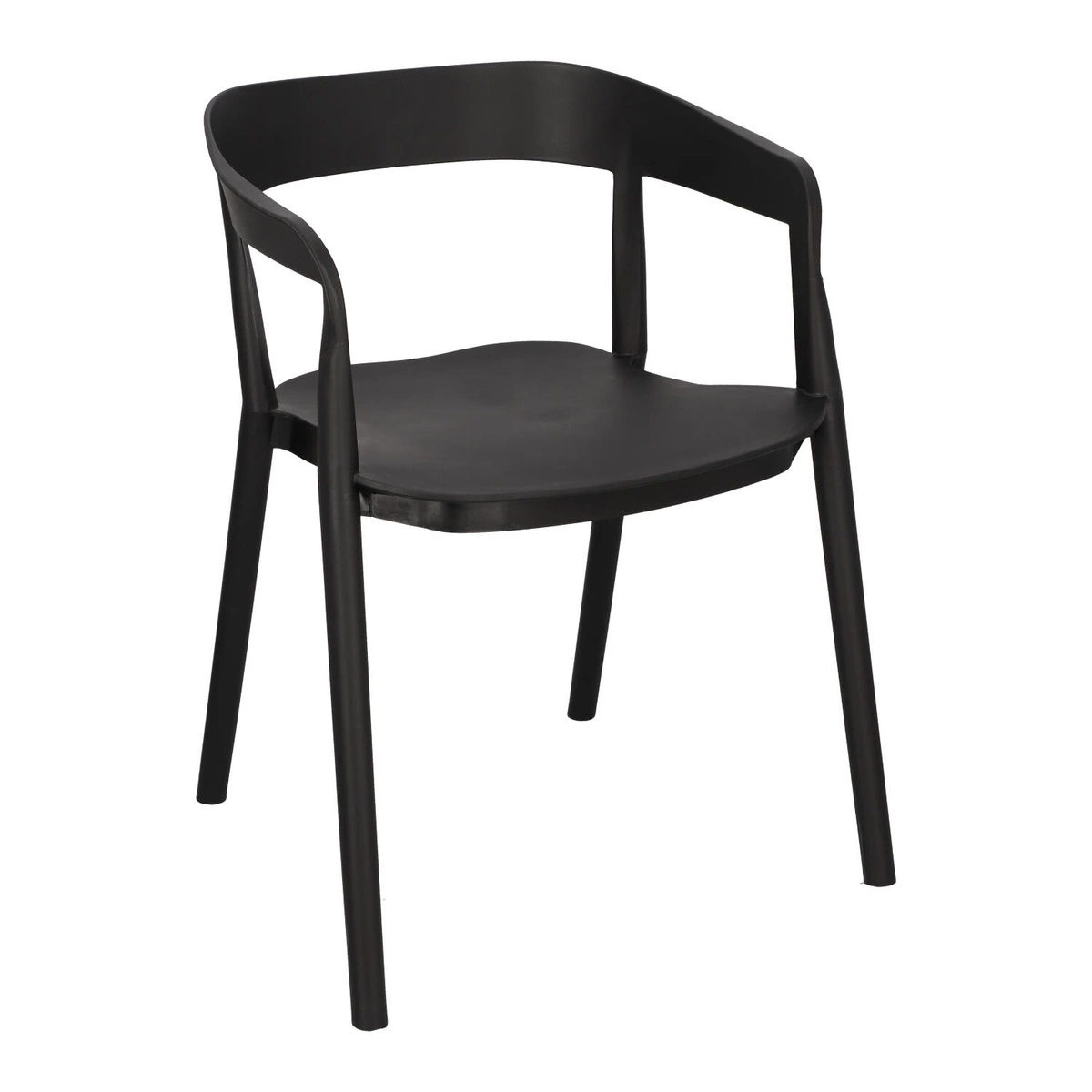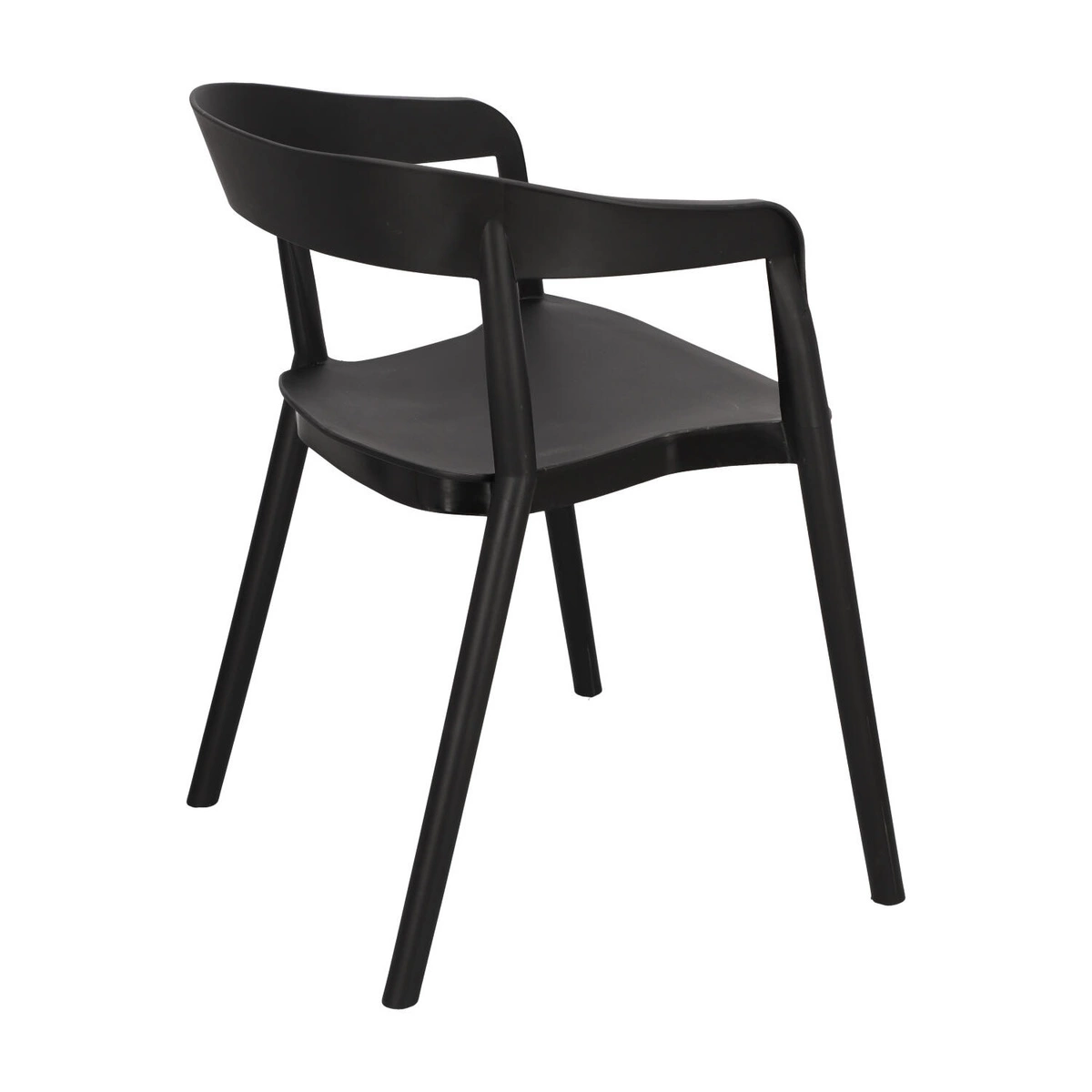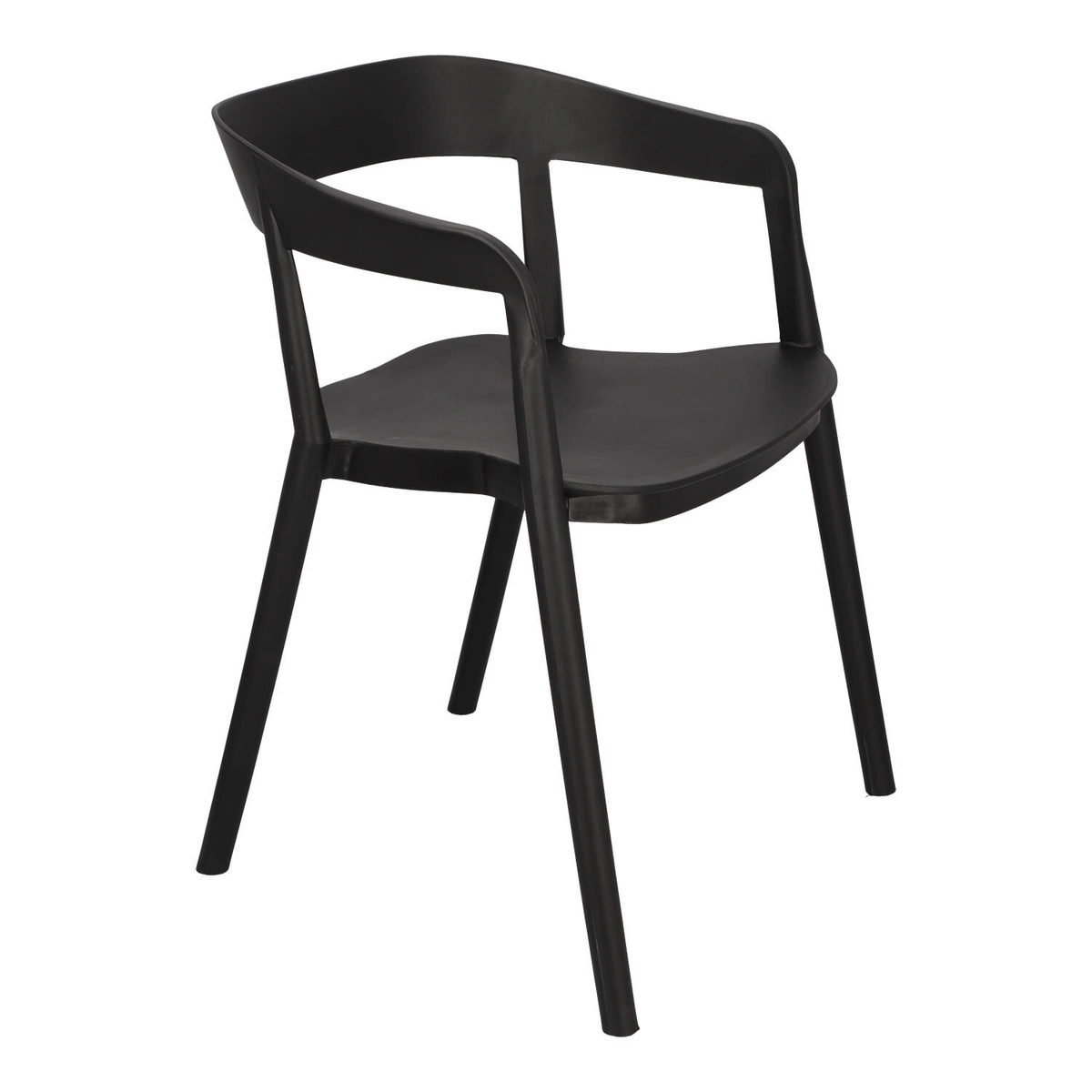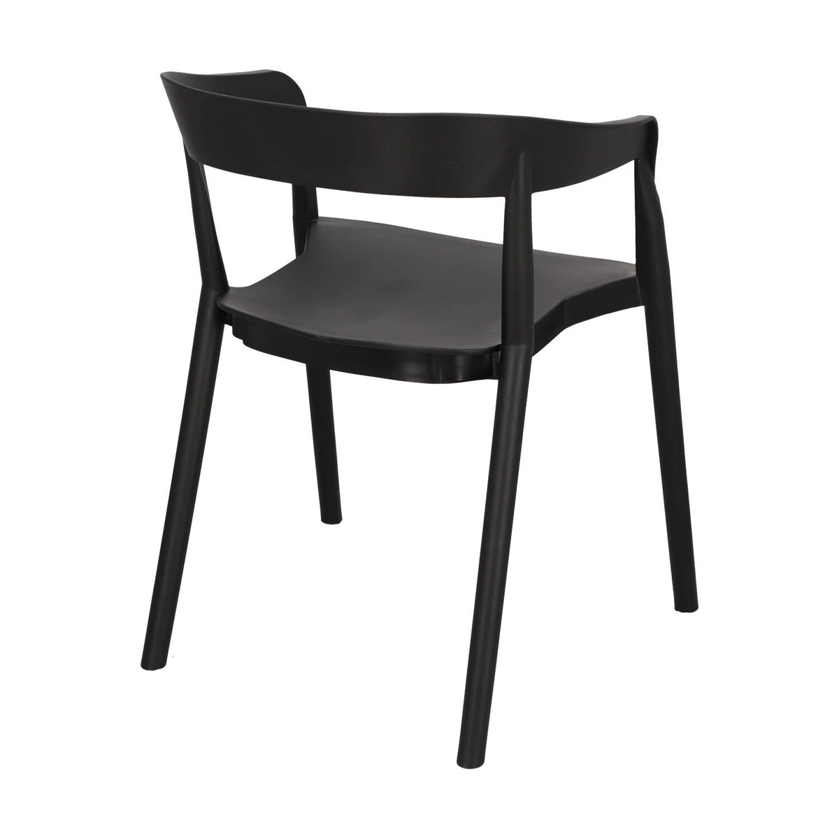 Krzesło Bow to nowoczesne polipropylenowe krzesło. Oparcie krzesła delikatnie przechodzi w podłokietniki tworząc przy tym wytrzymałą konstrukcję. Całe krzesło zostało zrobione z tworzywa w kolorze czarnym. Wsporniki łączące siedzisko z oparciem wyglądają jakby były przedłużeniem nóg krzesła. Krzesła się sztaplują. Max. obciążenie: 120kg. Wymiary kartonu: 67x58x90cm Max. ilość szt. w kartonie:4