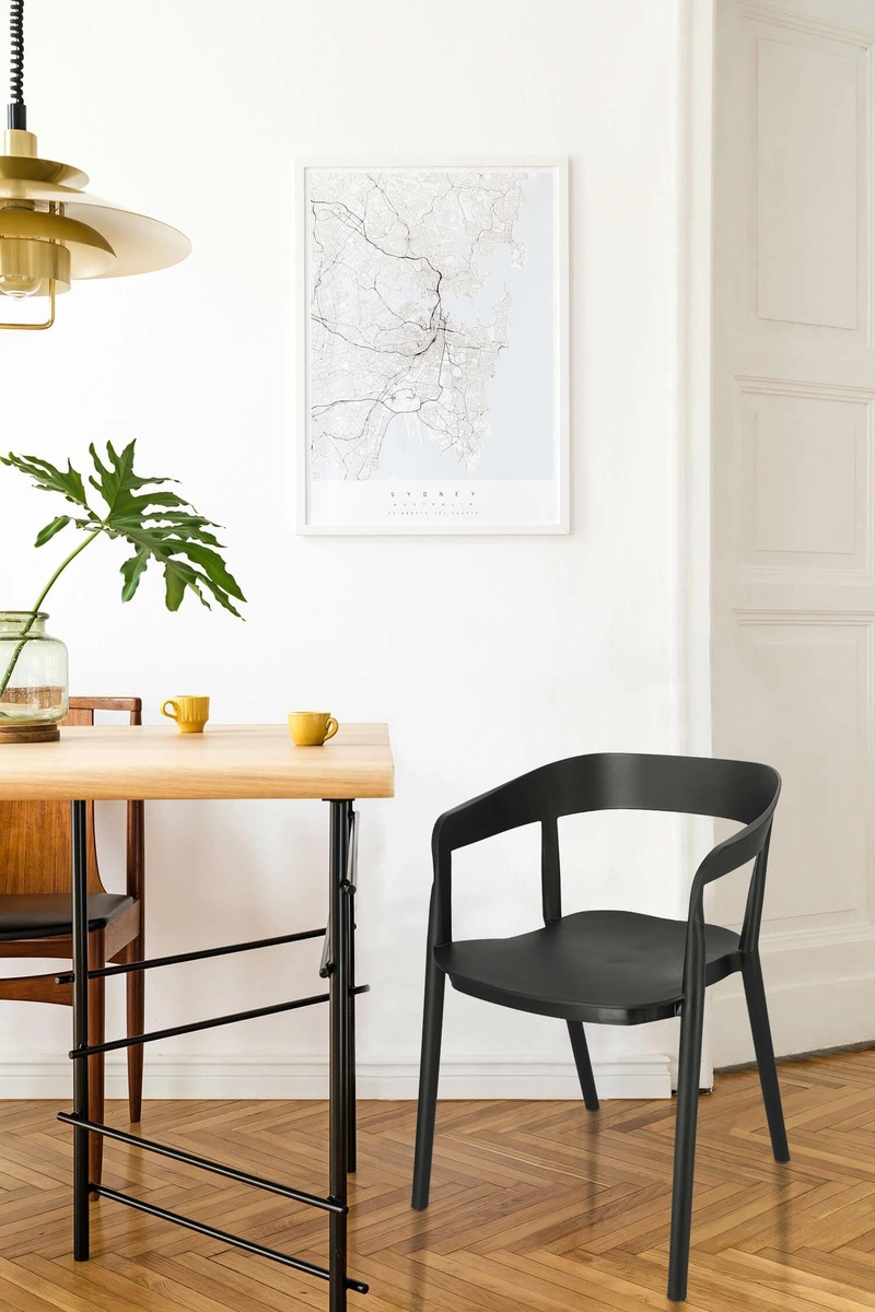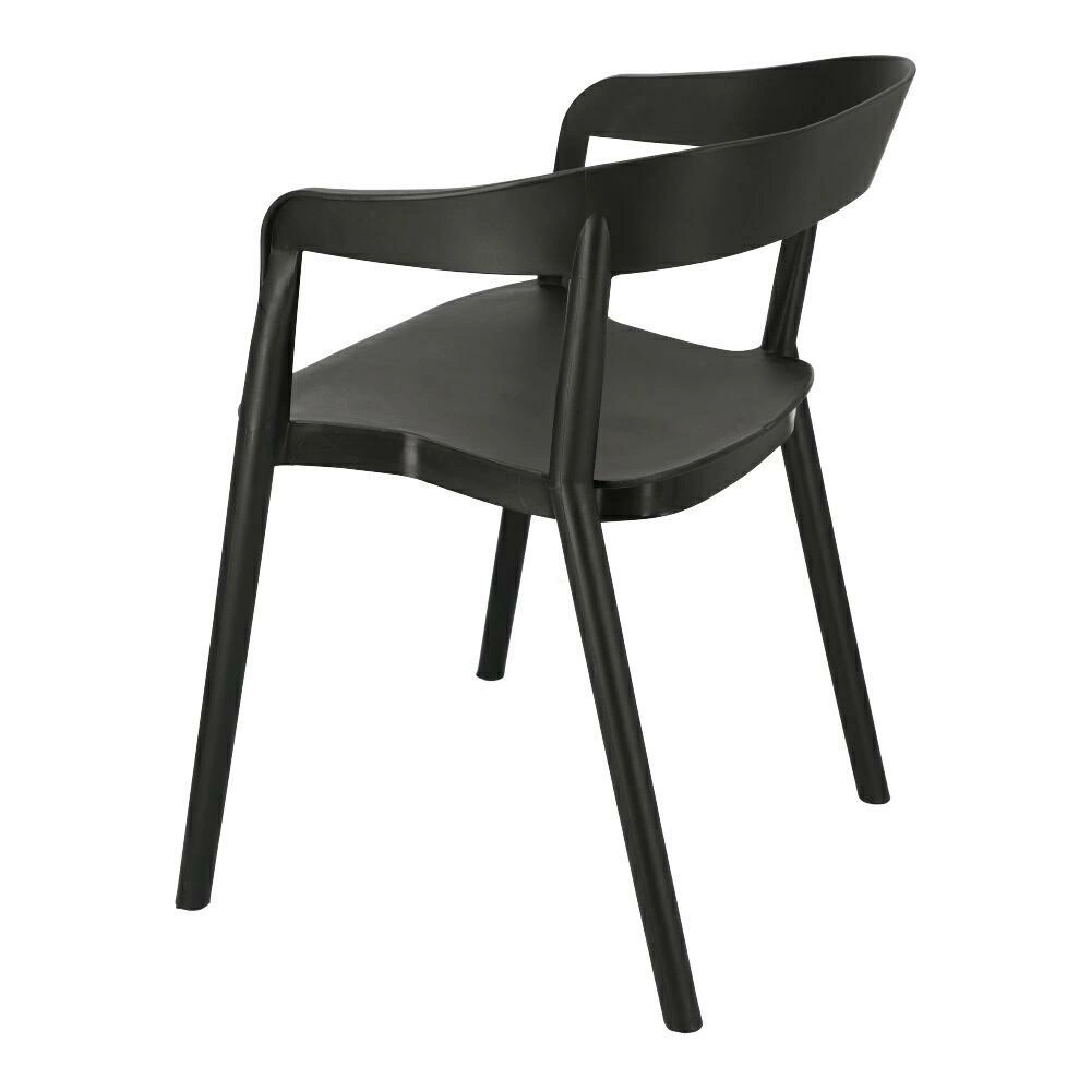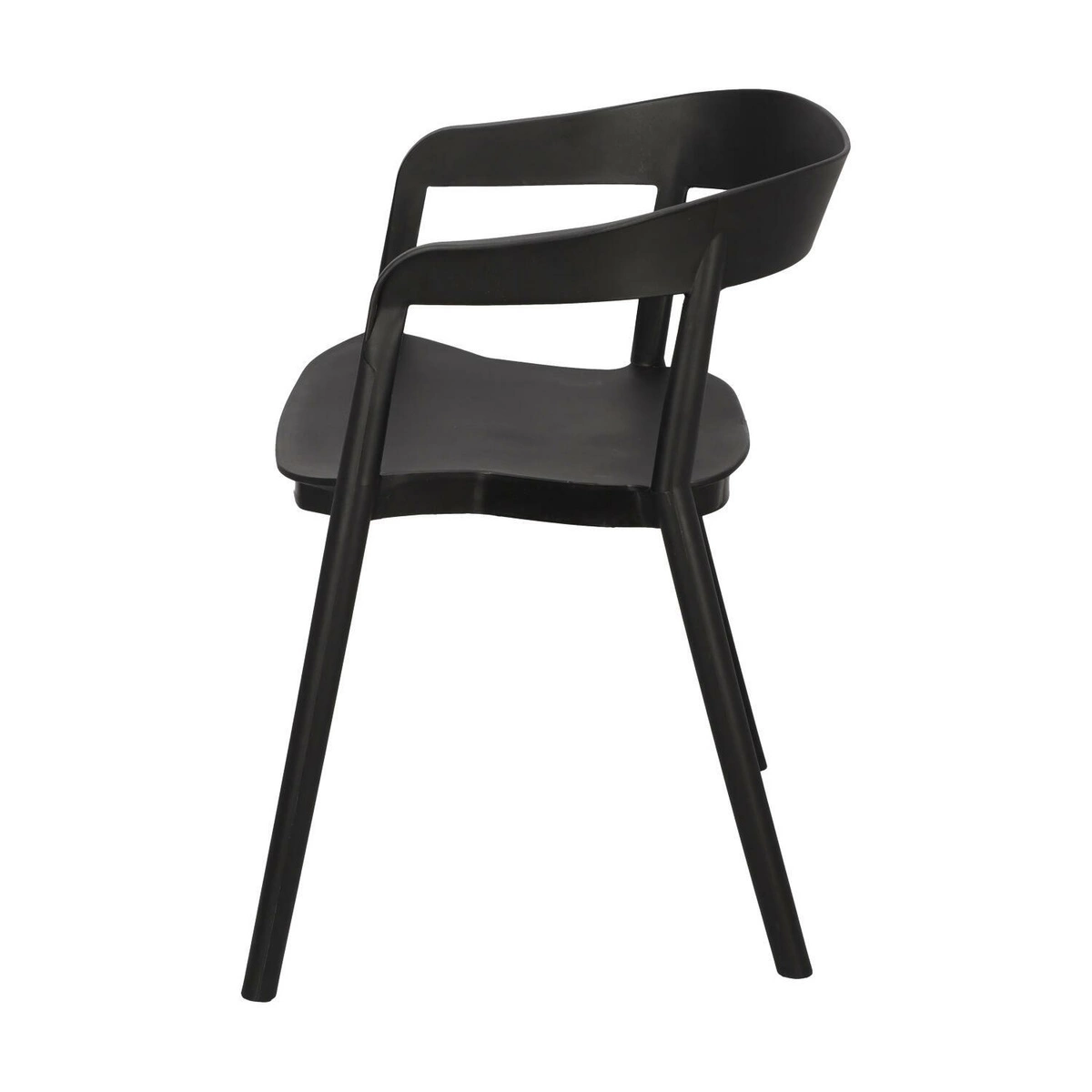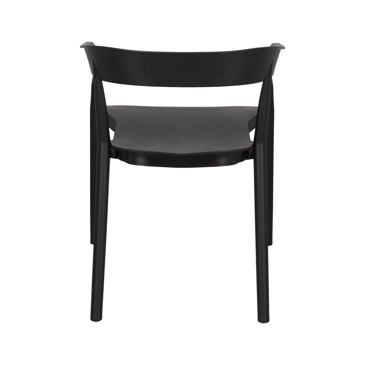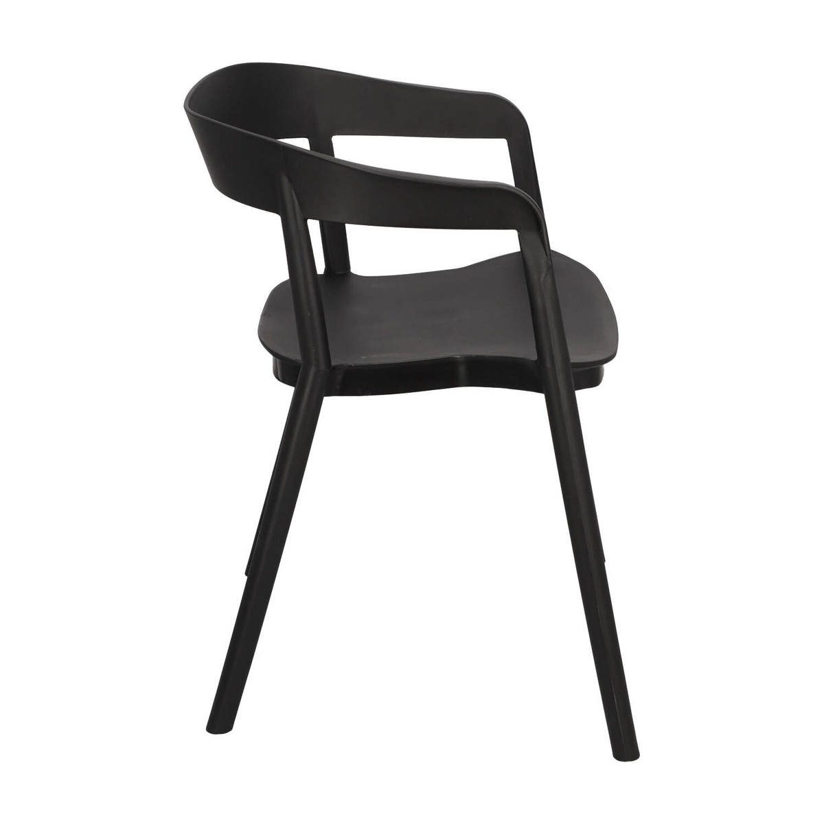 Krzesło Bow to nowoczesne polipropylenowe krzesło. Oparcie krzesła delikatnie przechodzi w podłokietniki tworząc przy tym wytrzymałą konstrukcję. Całe krzesło zostało zrobione z tworzywa w kolorze czarnym. Wsporniki łączące siedzisko z oparciem wyglądają jakby były przedłużeniem nóg krzesła. Krzesła się sztaplują. Max. obciążenie: 120kg. Wymiary kartonu: 67x58x90cm Max. ilość szt. w kartonie:4