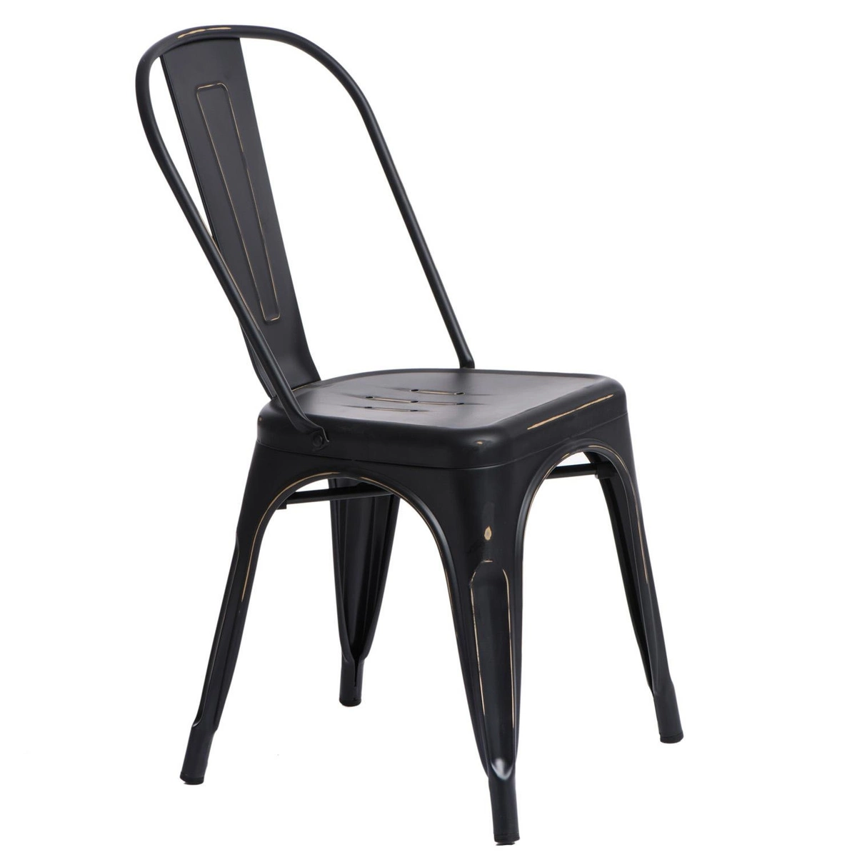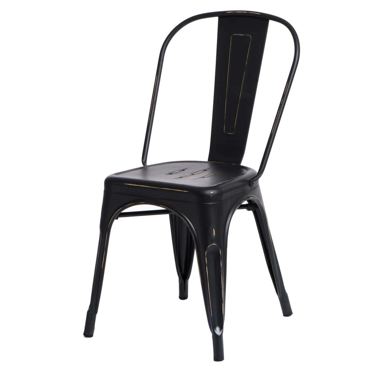 Industrialne krzesło Paris Antique wykonane zostało z metalu o matowym wykończeniu. Wygodne siedzisko jak i stabilna podstawa w tym samym kolorze posiadają przetarcia, które dodają dodatkowego charakteru całości mebla. Krzesło w stylu industrialnym sprawdzi się doskonale w surowych, loftowych wnętrzach, ale również eklektycznych. Maksymalne obciążenie krzesła wynosi 120kg. Krzesło można sztaplować, wymaga montażu, nie nadaje się do użytku zewnętrznego, waży ok.6kg Wys. siedziska: 45,5cm Gł. siedziska: 35cm Szer. siedziska: 37cm Max. ilość sztuk w kartonie: 3 Wymiary kartonu:61cm x 61cm x 112cm